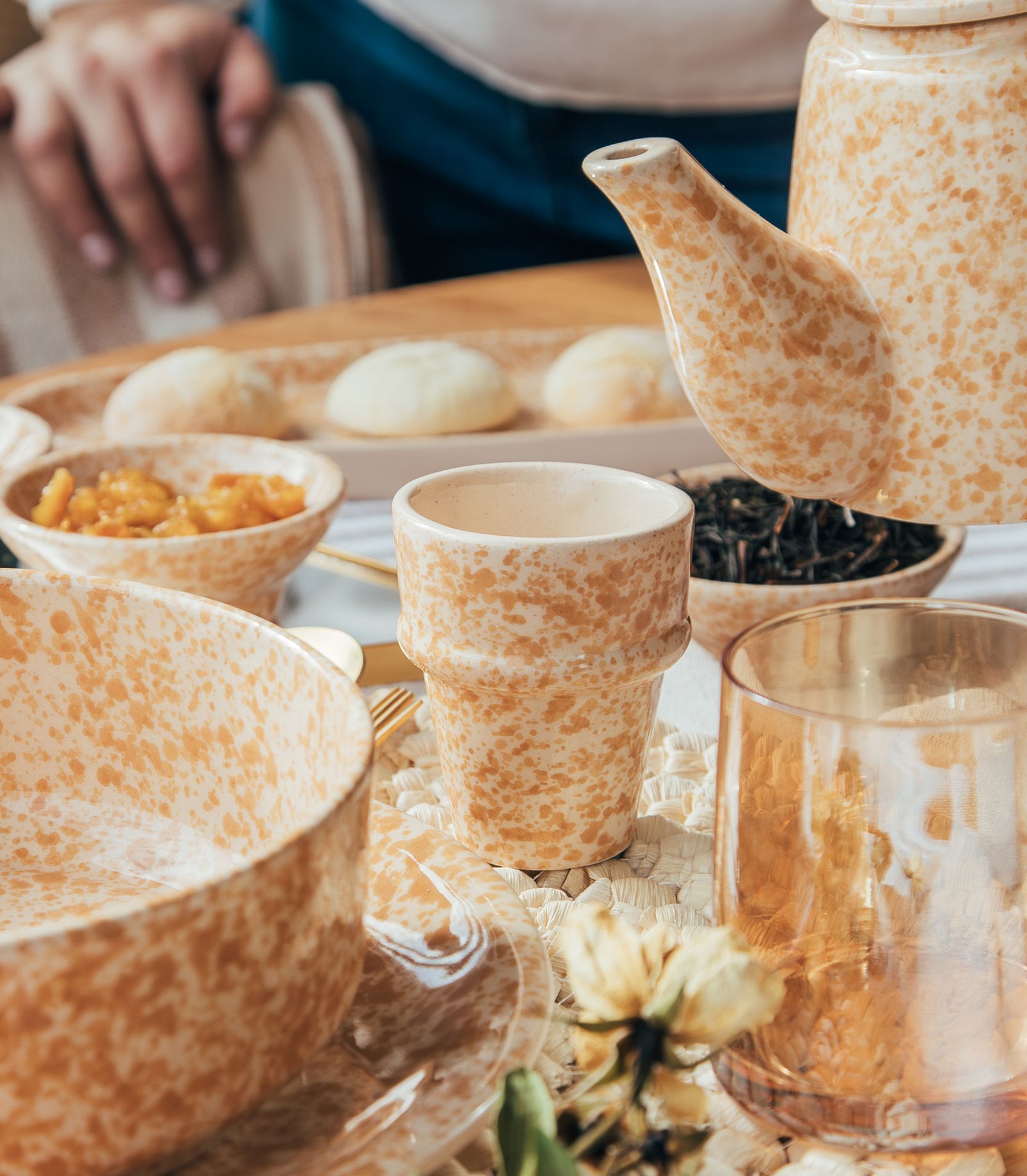2 Tazas Mini Café Granito Arena – Colección Granito Sahara Tomamos de inspiración el tradicional vaso de té marroquí. ¡Es una versión MINI para sorprender en tu hogar! Las cerámicas Tanit están hechas y pintadas a mano de forma tradicional por artesanos de alta cualidad. Fabricación: hecho y pintado a mano. Patrones: De estilo marroquí tradicional. Material: cerámica blanca, pintura sin plomo. Dimensiones: D5,5 H7,5 cm Capacidad: 70 ml Características: cerámica apta para alimentos y lavavajillas