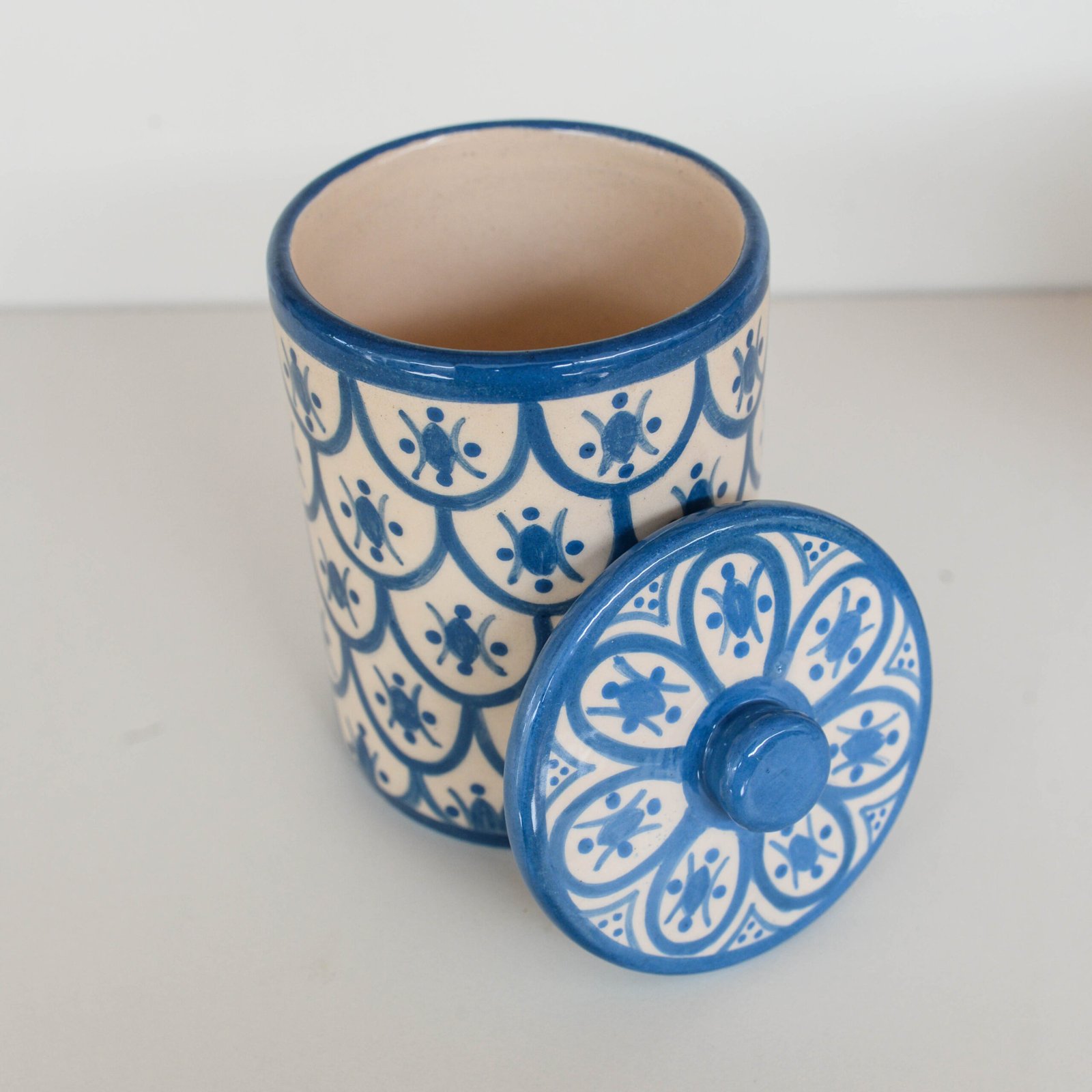Caja Gotas Útil para todas los espacios de tu hogar, para guardar lo que mas te gusta!!! DETALLES Fabricación: hecho y pintado a mano. Patron: estilo marroquí tradicional. Material: cerámica blanca, pintura sin plomo. Dimensiones: H8 D11 CM